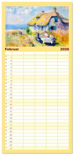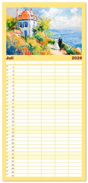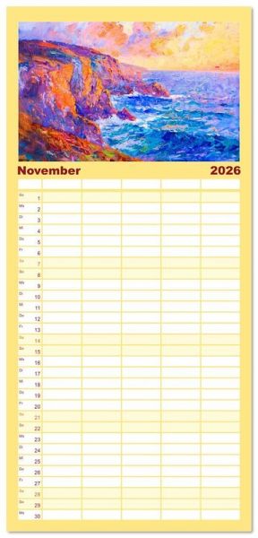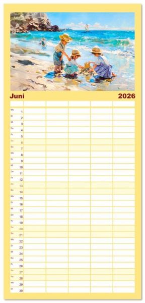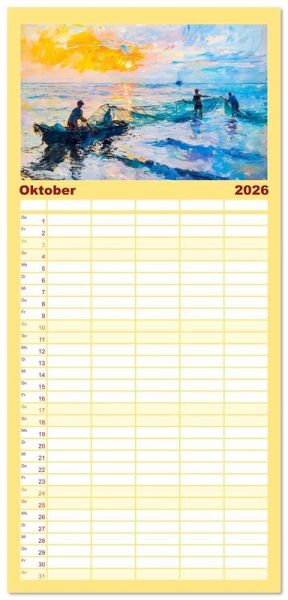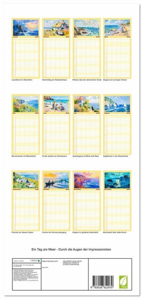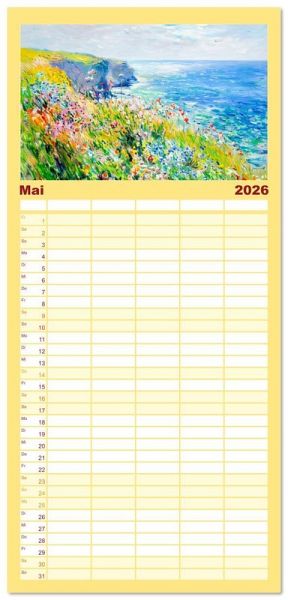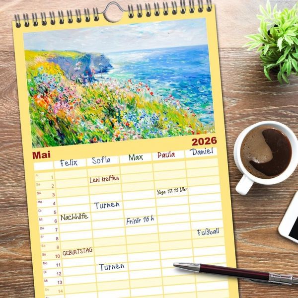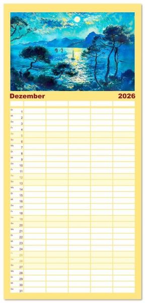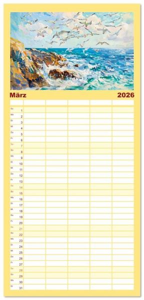 PRAKTISCH - übersichtlicher Familienkalender mit 5 Spalten für bis zu 5 Personen für mehr Struktur im Alltag - so bleiben alle Termine im Blick!ÜBERSICHTLICH - mit farblich getrennten Wochen- und Feiertagen. Die einzelnen Felder bieten genügend Platz für Eintragungen. So macht Organisieren Spaß!FANTASTISCHE BILDER - Dieser Planer ist nicht nur eine nützliche Hilfe im Alltag, sondern schmückt gleichzeitig Ihr Zuhause. Ideal auch als Geschenk.FÜR ALLE STIFTE GEEIGNET - ganz egal, ob Sie lieber mit Kugelschreiber oder Bleistift schreiben.NACHHALTIG - deutliche Abfallreduzierung durch bedarfsgerechte Einzelstückfertigung, umweltfreundliches FSC-zertifiziertes Papier, Produktion in Deutschland, klimabewusste Logistik.Ein Kalender voller Impressionistischer Meeresstimmungen in Licht und Farben von Autor(in): Anja Frost