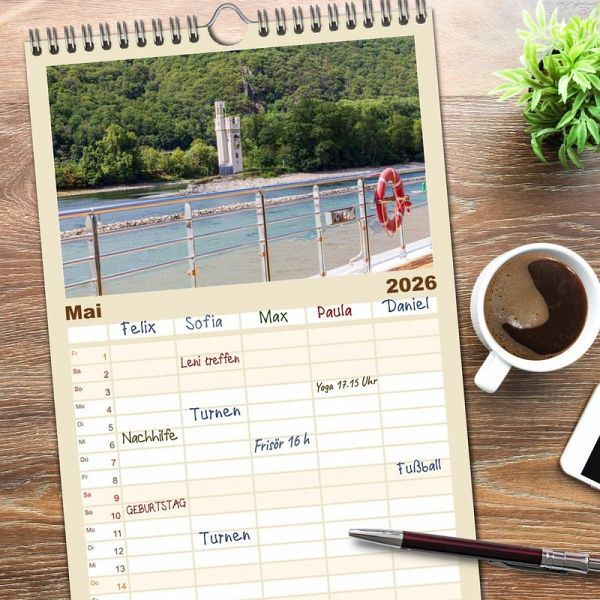 PRAKTISCH - übersichtlicher Familienkalender mit 5 Spalten für bis zu 5 Personen für mehr Struktur im Alltag - so bleiben alle Termine im Blick!ÜBERSICHTLICH - mit farblich getrennten Wochen- und Feiertagen. Die einzelnen Felder bieten genügend Platz für Eintragungen. So macht Organisieren Spaß!FANTASTISCHE BILDER - Dieser Planer ist nicht nur eine nützliche Hilfe im Alltag, sondern schmückt gleichzeitig Ihr Zuhause. Ideal auch als Geschenk.FÜR ALLE STIFTE GEEIGNET - ganz egal, ob Sie lieber mit Kugelschreiber oder Bleistift schreiben.NACHHALTIG - deutliche Abfallreduzierung durch bedarfsgerechte Einzelstückfertigung, umweltfreundliches FSC-zertifiziertes Papier, Produktion in Deutschland, klimabewusste Logistik.Perspektiven während einer Rheinkreuzfahrt vom Nieder- bis zum Oberrhein von Autor(in): mitifoto