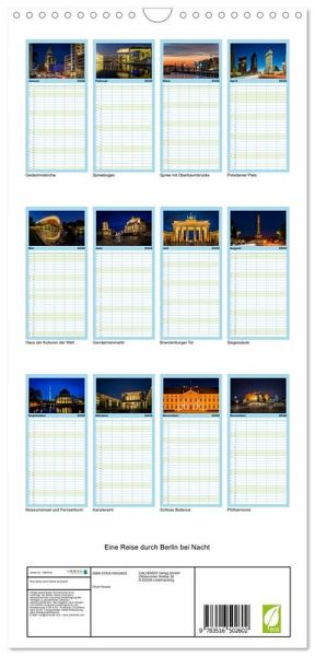 PRAKTISCH - übersichtlicher Familienkalender mit 5 Spalten für bis zu 5 Personen für mehr Struktur im Alltag - so bleiben alle Termine im Blick!ÜBERSICHTLICH - mit farblich getrennten Wochen- und Feiertagen. Die einzelnen Felder bieten genügend Platz für Eintragungen. So macht Organisieren Spaß!FANTASTISCHE BILDER - Dieser Planer ist nicht nur eine nützliche Hilfe im Alltag, sondern schmückt gleichzeitig Ihr Zuhause. Ideal auch als Geschenk.FÜR ALLE STIFTE GEEIGNET - ganz egal, ob Sie lieber mit Kugelschreiber oder Bleistift schreiben.NACHHALTIG - deutliche Abfallreduzierung durch bedarfsgerechte Einzelstückfertigung, umweltfreundliches FSC-zertifiziertes Papier, Produktion in Deutschland, klimabewusste Logistik.Eine Reise durch die Berliner Nacht in 12 Bildern von Autor(in): Oliver Nowak
