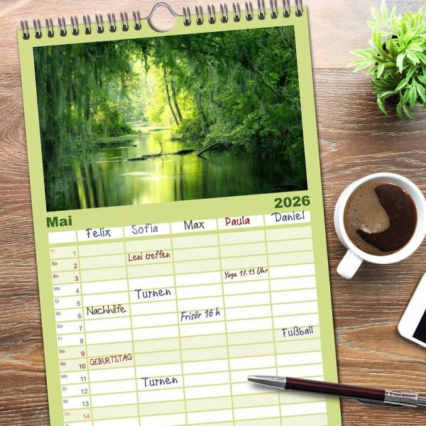 PRAKTISCH - übersichtlicher Familienkalender mit 5 Spalten für bis zu 5 Personen für mehr Struktur im Alltag - so bleiben alle Termine im Blick!ÜBERSICHTLICH - mit farblich getrennten Wochen- und Feiertagen. Die einzelnen Felder bieten genügend Platz für Eintragungen. So macht Organisieren Spaß!FANTASTISCHE BILDER - Dieser Planer ist nicht nur eine nützliche Hilfe im Alltag, sondern schmückt gleichzeitig Ihr Zuhause. Ideal auch als Geschenk.FÜR ALLE STIFTE GEEIGNET - ganz egal, ob Sie lieber mit Kugelschreiber oder Bleistift schreiben.NACHHALTIG - deutliche Abfallreduzierung durch bedarfsgerechte Einzelstückfertigung, umweltfreundliches FSC-zertifiziertes Papier, Produktion in Deutschland, klimabewusste Logistik.Eine Oase für Geist und Körper. von Autor(in): Happy Monkey