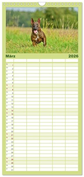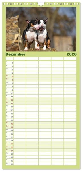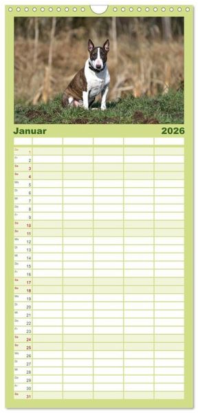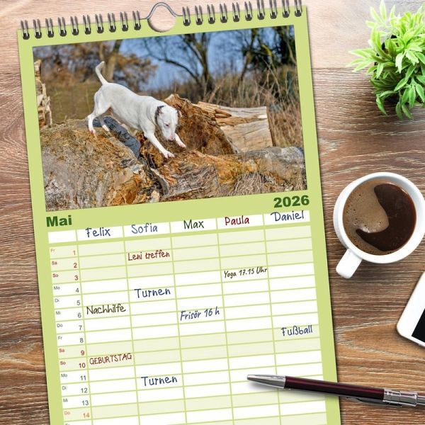 PRAKTISCH - übersichtlicher Familienkalender mit 5 Spalten für bis zu 5 Personen für mehr Struktur im Alltag - so bleiben alle Termine im Blick!ÜBERSICHTLICH - mit farblich getrennten Wochen- und Feiertagen. Die einzelnen Felder bieten genügend Platz für Eintragungen. So macht Organisieren Spaß!FANTASTISCHE BILDER - Dieser Planer ist nicht nur eine nützliche Hilfe im Alltag, sondern schmückt gleichzeitig Ihr Zuhause. Ideal auch als Geschenk.FÜR ALLE STIFTE GEEIGNET - ganz egal, ob Sie lieber mit Kugelschreiber oder Bleistift schreiben.NACHHALTIG - deutliche Abfallreduzierung durch bedarfsgerechte Einzelstückfertigung, umweltfreundliches FSC-zertifiziertes Papier, Produktion in Deutschland, klimabewusste Logistik.Wunderbare Fotografien von Bullterriern. von Autor(in): Yvonne Janetzek