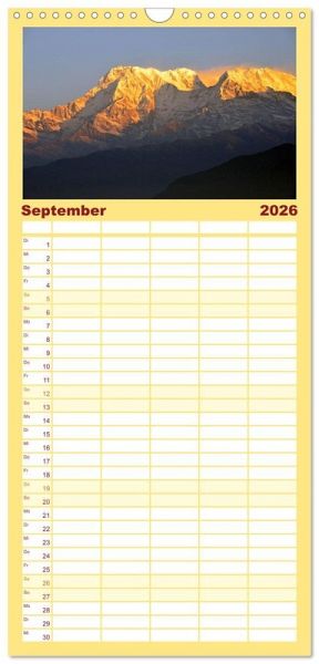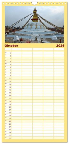 PRAKTISCH - übersichtlicher Familienkalender mit 5 Spalten für bis zu 5 Personen für mehr Struktur im Alltag - so bleiben alle Termine im Blick!ÜBERSICHTLICH - mit farblich getrennten Wochen- und Feiertagen. Die einzelnen Felder bieten genügend Platz für Eintragungen. So macht Organisieren Spaß!FANTASTISCHE BILDER - Dieser Planer ist nicht nur eine nützliche Hilfe im Alltag, sondern schmückt gleichzeitig Ihr Zuhause. Ideal auch als Geschenk.FÜR ALLE STIFTE GEEIGNET - ganz egal, ob Sie lieber mit Kugelschreiber oder Bleistift schreiben.NACHHALTIG - deutliche Abfallreduzierung durch bedarfsgerechte Einzelstückfertigung, umweltfreundliches FSC-zertifiziertes Papier, Produktion in Deutschland, klimabewusste Logistik.Bilder von grandiosen Bergen des Himalaya und einer großartigen Architektur. von Autor(in): Ulrich Senff