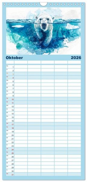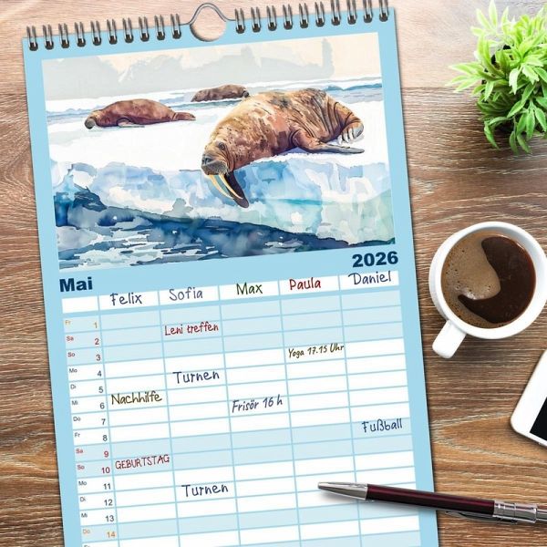 PRAKTISCH - übersichtlicher Familienkalender mit 5 Spalten für bis zu 5 Personen für mehr Struktur im Alltag - so bleiben alle Termine im Blick!ÜBERSICHTLICH - mit farblich getrennten Wochen- und Feiertagen. Die einzelnen Felder bieten genügend Platz für Eintragungen. So macht Organisieren Spaß!FANTASTISCHE BILDER - Dieser Planer ist nicht nur eine nützliche Hilfe im Alltag, sondern schmückt gleichzeitig Ihr Zuhause. Ideal auch als Geschenk.FÜR ALLE STIFTE GEEIGNET - ganz egal, ob Sie lieber mit Kugelschreiber oder Bleistift schreiben.NACHHALTIG - deutliche Abfallreduzierung durch bedarfsgerechte Einzelstückfertigung, umweltfreundliches FSC-zertifiziertes Papier, Produktion in Deutschland, klimabewusste Logistik.Begegnungen mit den Tieren des Polarkreises von Autor(in): Anja Frost