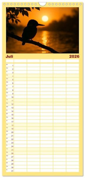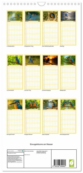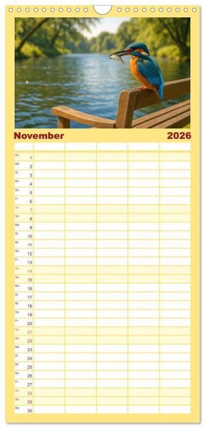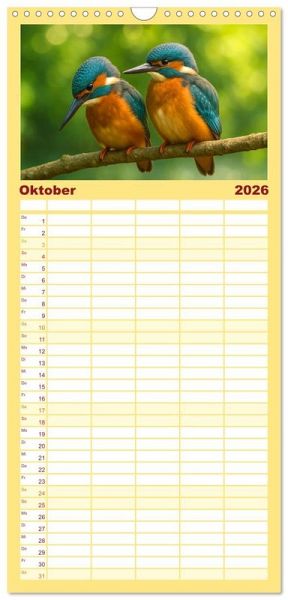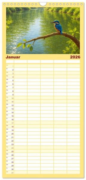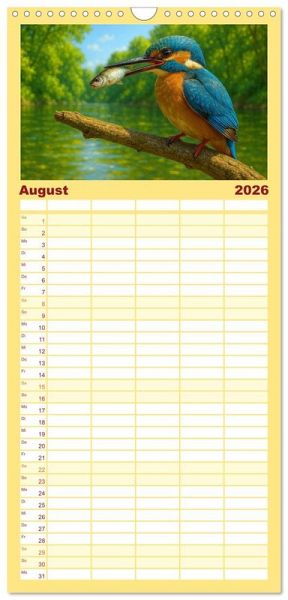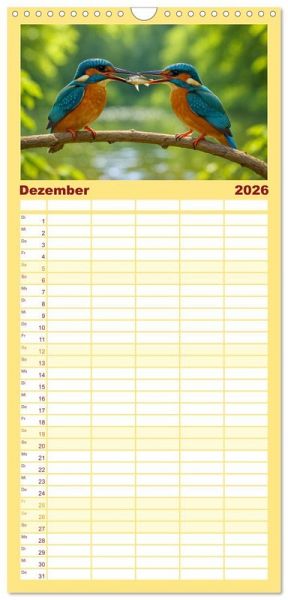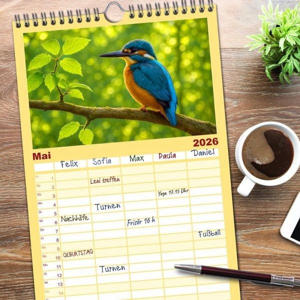 sichtlicher Familienkalender mit 5 Spalten für bis zu 5 Personen für mehr Struktur im Alltag - so bleiben alle Termine im Blick!ÜBERSICHTLICH - mit farblich getrennten Wochen- und Feiertagen. Die einzelnen Felder bieten genügend Platz für Eintragungen. So macht Organisieren Spaß!FANTASTISCHE BILDER - Dieser Planer ist nicht nur eine nützliche Hilfe im Alltag, sondern schmückt gleichzeitig Ihr Zuhause. Ideal auch als Geschenk.FÜR ALLE STIFTE GEEIGNET - ganz egal, ob Sie lieber mit Kugelschreiber oder Bleistift schreiben.NACHHALTIG - deutliche Abfallreduzierung durch bedarfsgerechte Einzelstückfertigung, umweltfreundliches FSC-zertifiziertes Papier, Produktion in Deutschland, klimabewusste Logistik.Jeden Monat ein digitales Kunstwerk - Eisvögel, wie Sie sie noch nie gesehen haben! von Autor(in): Kerstin Waurick
