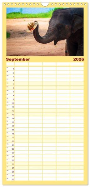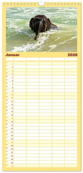 Familienkalender mit 5 Spalten für bis zu 5 Personen für mehr Struktur im Alltag - so bleiben alle Termine im Blick!ÜBERSICHTLICH - mit farblich getrennten Wochen- und Feiertagen. Die einzelnen Felder bieten genügend Platz für Eintragungen. So macht Organisieren Spaß!FANTASTISCHE BILDER - Dieser Planer ist nicht nur eine nützliche Hilfe im Alltag, sondern schmückt gleichzeitig Ihr Zuhause. Ideal auch als Geschenk.FÜR ALLE STIFTE GEEIGNET - ganz egal, ob Sie lieber mit Kugelschreiber oder Bleistift schreiben.NACHHALTIG - deutliche Abfallreduzierung durch bedarfsgerechte Einzelstückfertigung, umweltfreundliches FSC-zertifiziertes Papier, Produktion in Deutschland, klimabewusste Logistik.Elefanten Babys beim Baden in Thailand von Autor(in): Elisabeth Stanzer