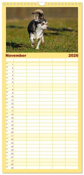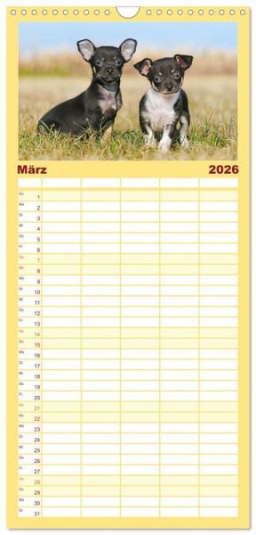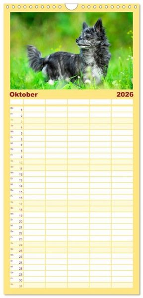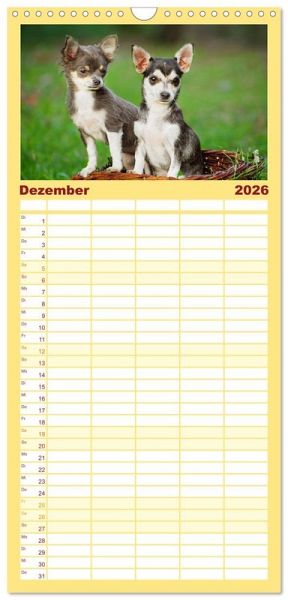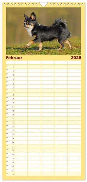 bersichtlicher Familienkalender mit 5 Spalten für bis zu 5 Personen für mehr Struktur im Alltag - so bleiben alle Termine im Blick!ÜBERSICHTLICH - mit farblich getrennten Wochen- und Feiertagen. Die einzelnen Felder bieten genügend Platz für Eintragungen. So macht Organisieren Spaß!FANTASTISCHE BILDER - Dieser Planer ist nicht nur eine nützliche Hilfe im Alltag, sondern schmückt gleichzeitig Ihr Zuhause. Ideal auch als Geschenk.FÜR ALLE STIFTE GEEIGNET - ganz egal, ob Sie lieber mit Kugelschreiber oder Bleistift schreiben.NACHHALTIG - deutliche Abfallreduzierung durch bedarfsgerechte Einzelstückfertigung, umweltfreundliches FSC-zertifiziertes Papier, Produktion in Deutschland, klimabewusste Logistik.Die kleinste Hunderasse der Welt auf 13 faszinierenden Fotos von Autor(in): SiSta-Tierfoto