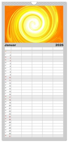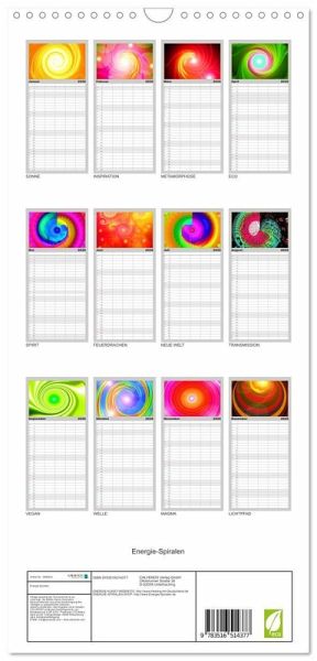 Herzlich Willkommen in der faszinierenden Welt der Energie-Spiralen.Ich freue mich, Ihnen diesen wundervollen Spiralen-Kalender vorstellen zu dürfen - die Farben erstrahlen im leuchtendsten sonnengelb - ein wahrhaftig durch und durch positiv motivierender Jahres- und Tagbegleiter für zu Hause oder an Ihrem Arbeitsplatz.Alles in unserer Welt - sogar das für unser Auge Unsichtbare - ist Energie und Schwingung und erscheint noch lebendiger durch Licht und Farbe. Alles, vom kleinsten Elementarteilchen bis hin zur universellen Spiral-Galaxie, bewegt und dreht sich, bildet eine Spirale oder gestaltet sich kreisförmig. Die vorliegenden Energiespiralen vermitteln einen kleinen Eindruck von der unbeschreiblichen Dynamik und Verschiedenartigkeit und sprechen dennoch alle eine gemeinsame Sprache: sie pulsieren und bewegen sich spiralförmig entweder hinein oder heraus, rechts- oder linksdrehend. Die Energie-Spiralen haben eine motivierende und befreiende Eigen-Dynamik, in Abhängigkeit von Form und Farbe. Jeder, der sie betrachtet, wird individuell darauf reagieren. Die Spiralen erhöhen das positive Raumklima (im Sinne des Feng-Shui), und eignen sich hervorragend zur Wand-Dekoration von Naturheilpraxen, Arztpraxen, Kliniken und REHA-Einrichtungen, Seniorenresidenzen, Yoga- und Wellness-Einrichtungen, Konferenzräumen, Büros, Hotels, Foyers und Wartezonen. Die Spiralbilder dienen sowohl als stimulierende wie auch beruhigende Wohlfühl-Kunstobjekte und Dekorationen. Sie verschönern und harmonisieren Ihren privaten Wohnraum sowie Ihre Rückzugs- und Erholungs-Oasen. Es sind farbenprächtige Spiralen-Kunstwerke, die ein modernes Business-Interior noch facettenreicher zu gestalten vermögen. Energie-Kunst-Bilder von Ramon Labusch: International bekannter Energy-ART-Designer und Energie-Künstler für intuitive, visionäre und phantastische Energiekunst und Schwingungsbilder.Webseite: http://www.Healing-Art-Deutschland.de SHOP: http://www.Energie-Kunst-Deutschland.deENERGIE-SPIRALEN-WEBSEITE: http://www.Energie-Spiralen-Deutschland.de ENERGIE-SPIRALEN-SHOP: http://www.Energie-Spiralen.de
