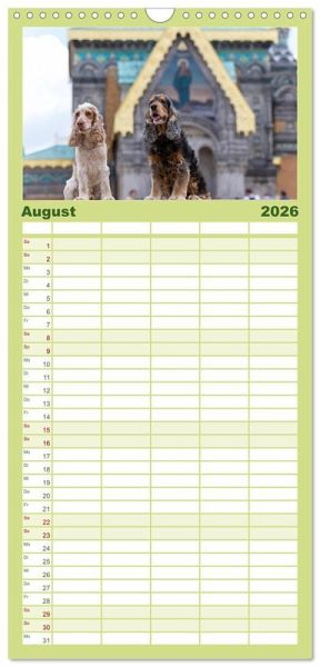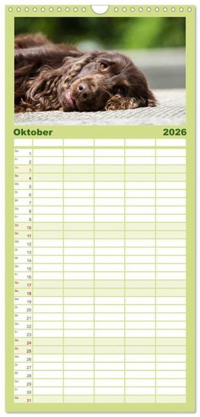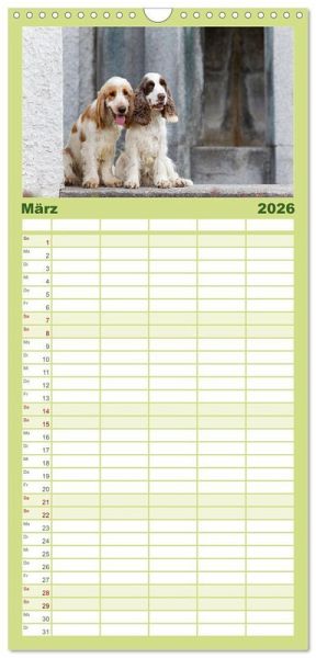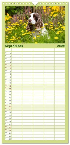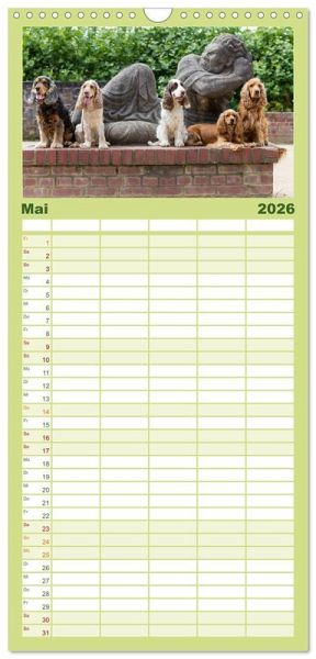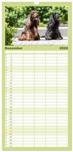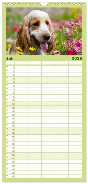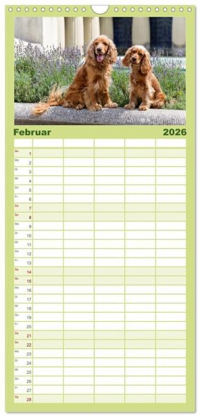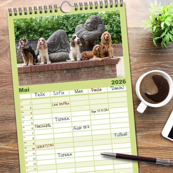 PRAKTISCH - übersichtlicher Familienkalender mit 5 Spalten für bis zu 5 Personen für mehr Struktur im Alltag - so bleiben alle Termine im Blick!ÜBERSICHTLICH - mit farblich getrennten Wochen- und Feiertagen. Die einzelnen Felder bieten genügend Platz für Eintragungen. So macht Organisieren Spaß!FANTASTISCHE BILDER - Dieser Planer ist nicht nur eine nützliche Hilfe im Alltag, sondern schmückt gleichzeitig Ihr Zuhause. Ideal auch als Geschenk.FÜR ALLE STIFTE GEEIGNET - ganz egal, ob Sie lieber mit Kugelschreiber oder Bleistift schreiben.NACHHALTIG - deutliche Abfallreduzierung durch bedarfsgerechte Einzelstückfertigung, umweltfreundliches FSC-zertifiziertes Papier, Produktion in Deutschland, klimabewusste Logistik.English Cocker Spaniel im Park auf der Mathildenhöhe von Autor(in): Fotodesign Verena Scholze