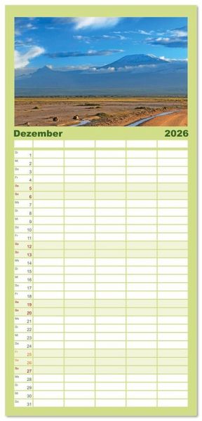 PRAKTISCH - übersichtlicher Familienkalender mit 5 Spalten für bis zu 5 Personen für mehr Struktur im Alltag - so bleiben alle Termine im Blick!ÜBERSICHTLICH - mit farblich getrennten Wochen- und Feiertagen. Die einzelnen Felder bieten genügend Platz für Eintragungen. So macht Organisieren Spaß!FANTASTISCHE BILDER - Dieser Planer ist nicht nur eine nützliche Hilfe im Alltag, sondern schmückt gleichzeitig Ihr Zuhause. Ideal auch als Geschenk.FÜR ALLE STIFTE GEEIGNET - ganz egal, ob Sie lieber mit Kugelschreiber oder Bleistift schreiben.NACHHALTIG - deutliche Abfallreduzierung durch bedarfsgerechte Einzelstückfertigung, umweltfreundliches FSC-zertifiziertes Papier, Produktion in Deutschland, klimabewusste Logistik.Kilimandscharo: Schnee auf dem Kibo Gipfel in Afrika von Autor(in): CALVENDO Verlag
