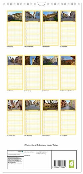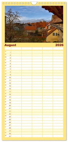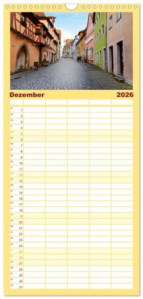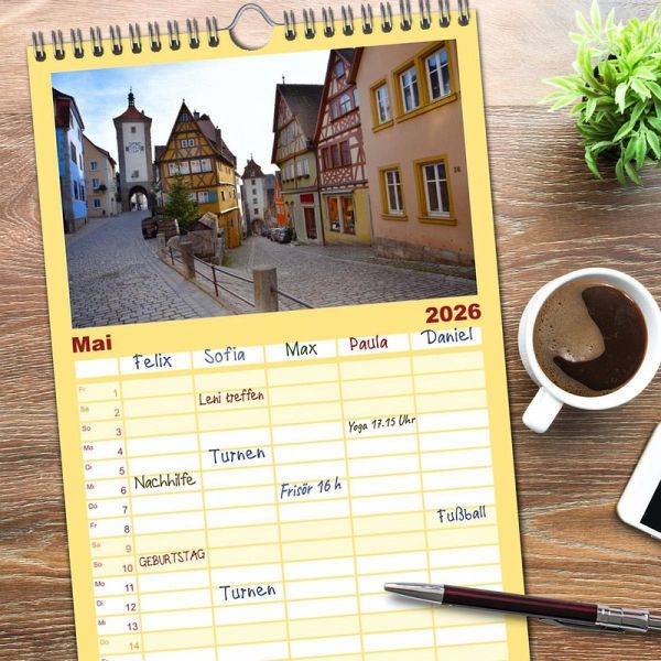 Familienkalender mit 5 Spalten für bis zu 5 Personen für mehr Struktur im Alltag - so bleiben alle Termine im Blick!ÜBERSICHTLICH - mit farblich getrennten Wochen- und Feiertagen. Die einzelnen Felder bieten genügend Platz für Eintragungen. So macht Organisieren Spaß!FANTASTISCHE BILDER - Dieser Planer ist nicht nur eine nützliche Hilfe im Alltag, sondern schmückt gleichzeitig Ihr Zuhause. Ideal auch als Geschenk.FÜR ALLE STIFTE GEEIGNET - ganz egal, ob Sie lieber mit Kugelschreiber oder Bleistift schreiben.NACHHALTIG - deutliche Abfallreduzierung durch bedarfsgerechte Einzelstückfertigung, umweltfreundliches FSC-zertifiziertes Papier, Produktion in Deutschland, klimabewusste Logistik.Eine bezaubernde Stadt, die für ihre mittelalterliche Architektur bekannt ist. von Autor(in): Nadine Büscher