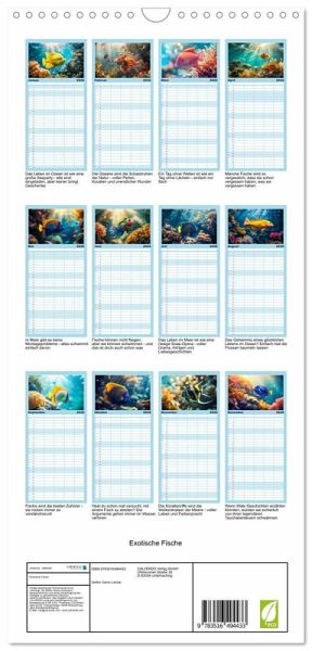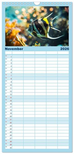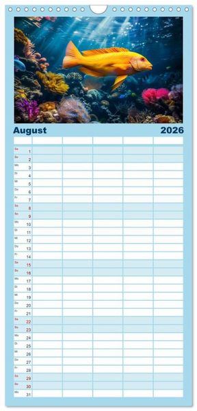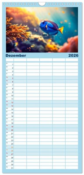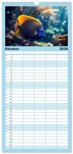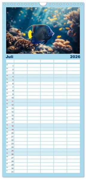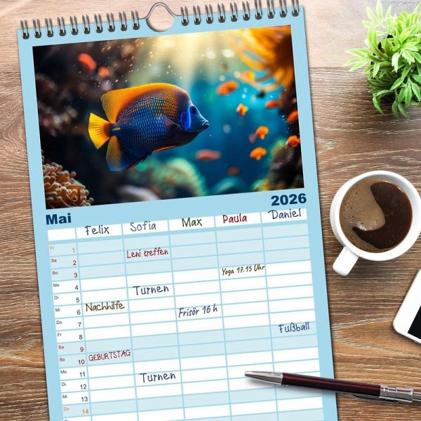 PRAKTISCH - übersichtlicher Familienkalender mit 5 Spalten für bis zu 5 Personen für mehr Struktur im Alltag - so bleiben alle Termine im Blick!ÜBERSICHTLICH - mit farblich getrennten Wochen- und Feiertagen. Die einzelnen Felder bieten genügend Platz für Eintragungen. So macht Organisieren Spaß!FANTASTISCHE BILDER - Dieser Planer ist nicht nur eine nützliche Hilfe im Alltag, sondern schmückt gleichzeitig Ihr Zuhause. Ideal auch als Geschenk.FÜR ALLE STIFTE GEEIGNET - ganz egal, ob Sie lieber mit Kugelschreiber oder Bleistift schreiben.NACHHALTIG - deutliche Abfallreduzierung durch bedarfsgerechte Einzelstückfertigung, umweltfreundliches FSC-zertifiziertes Papier, Produktion in Deutschland, klimabewusste Logistik.Tauchen Sie ein in die faszinierende Welt exotischer Fische, wo Farben explodieren und Formen verzaubern. von Autor(in): Steffen Gierok ; Magik Artist Design