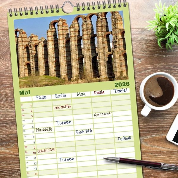 PRAKTISCH - übersichtlicher Familienkalender mit 5 Spalten für bis zu 5 Personen für mehr Struktur im Alltag - so bleiben alle Termine im Blick!ÜBERSICHTLICH - mit farblich getrennten Wochen- und Feiertagen. Die einzelnen Felder bieten genügend Platz für Eintragungen. So macht Organisieren Spaß!FANTASTISCHE BILDER - Dieser Planer ist nicht nur eine nützliche Hilfe im Alltag, sondern schmückt gleichzeitig Ihr Zuhause. Ideal auch als Geschenk.FÜR ALLE STIFTE GEEIGNET - ganz egal, ob Sie lieber mit Kugelschreiber oder Bleistift schreiben.NACHHALTIG - deutliche Abfallreduzierung durch bedarfsgerechte Einzelstückfertigung, umweltfreundliches FSC-zertifiziertes Papier, Produktion in Deutschland, klimabewusste Logistik.Bilder aus einer einzigartigen Region in Spanien von Autor(in): Karin Strunge