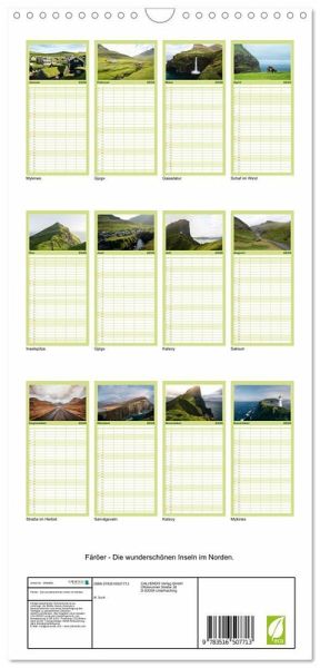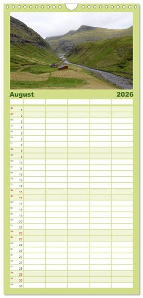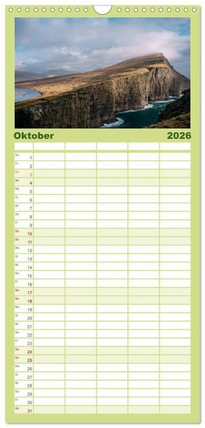 SCH - übersichtlicher Familienkalender mit 5 Spalten für bis zu 5 Personen für mehr Struktur im Alltag - so bleiben alle Termine im Blick!ÜBERSICHTLICH - mit farblich getrennten Wochen- und Feiertagen. Die einzelnen Felder bieten genügend Platz für Eintragungen. So macht Organisieren Spaß!FANTASTISCHE BILDER - Dieser Planer ist nicht nur eine nützliche Hilfe im Alltag, sondern schmückt gleichzeitig Ihr Zuhause. Ideal auch als Geschenk.FÜR ALLE STIFTE GEEIGNET - ganz egal, ob Sie lieber mit Kugelschreiber oder Bleistift schreiben.NACHHALTIG - deutliche Abfallreduzierung durch bedarfsgerechte Einzelstückfertigung, umweltfreundliches FSC-zertifiziertes Papier, Produktion in Deutschland, klimabewusste Logistik.Kommen Sie mit auf eine außergewöhnliche Entdeckungsreise in den Färöer. von Autor(in): Benjamin Lederer