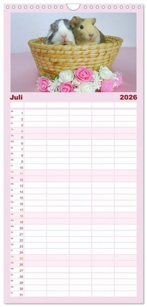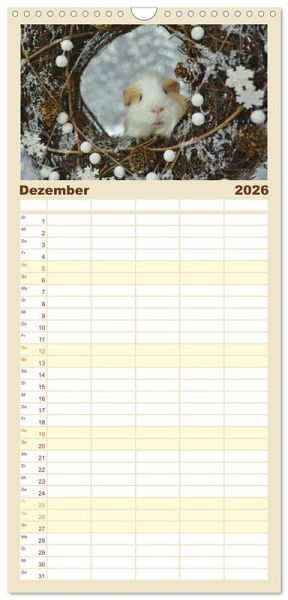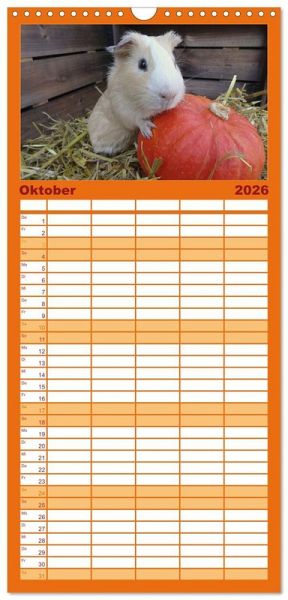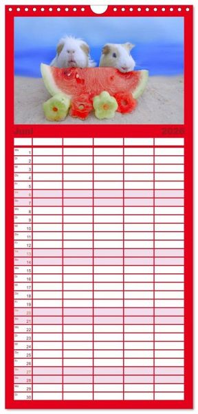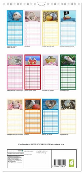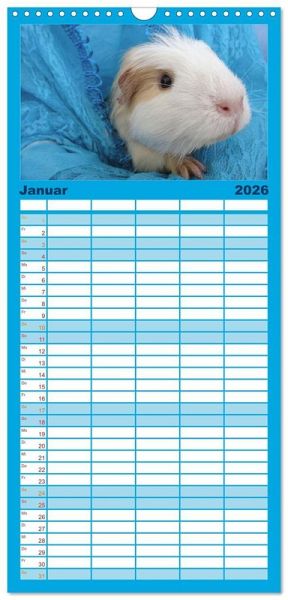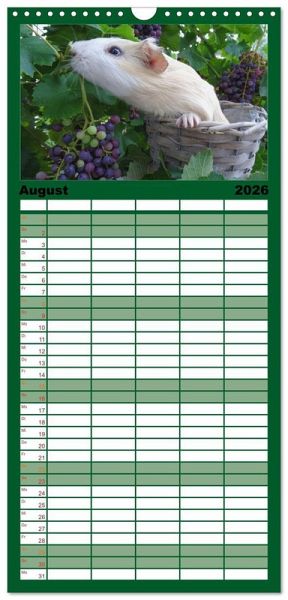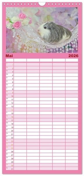 PRAKTISCH - übersichtlicher Familienkalender mit 5 Spalten für bis zu 5 Personen für mehr Struktur im Alltag - so bleiben alle Termine im Blick!ÜBERSICHTLICH - mit farblich getrennten Wochen- und Feiertagen. Die einzelnen Felder bieten genügend Platz für Eintragungen. So macht Organisieren Spaß!FANTASTISCHE BILDER - Dieser Planer ist nicht nur eine nützliche Hilfe im Alltag, sondern schmückt gleichzeitig Ihr Zuhause. Ideal auch als Geschenk.FÜR ALLE STIFTE GEEIGNET - ganz egal, ob Sie lieber mit Kugelschreiber oder Bleistift schreiben.NACHHALTIG - deutliche Abfallreduzierung durch bedarfsgerechte Einzelstückfertigung, umweltfreundliches FSC-zertifiziertes Papier, Produktion in Deutschland, klimabewusste Logistik.Bezaubernde Meerschweinchen von ihrer besonderen Seite fotografiert von Autor(in): Sabine Hampe-Neves