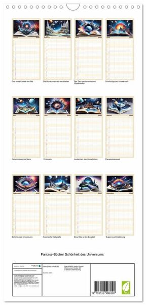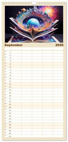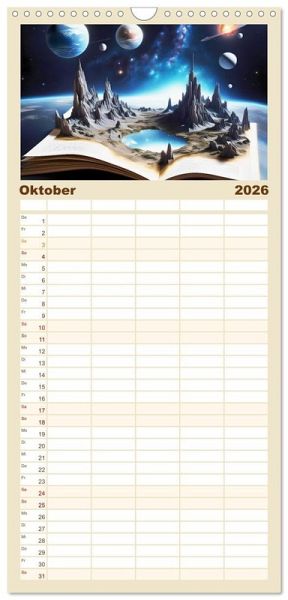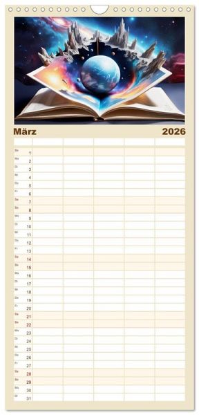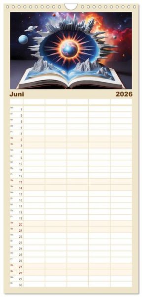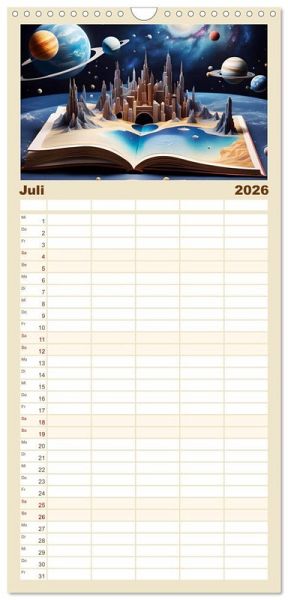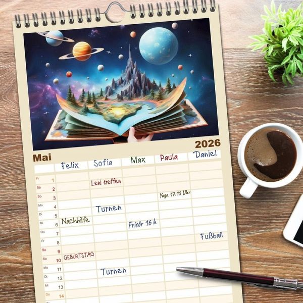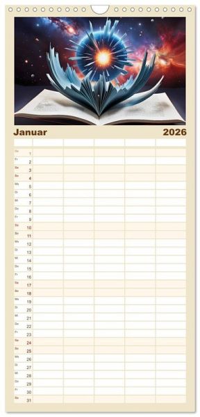 PRAKTISCH - übersichtlicher Familienkalender mit 5 Spalten für bis zu 5 Personen für mehr Struktur im Alltag - so bleiben alle Termine im Blick!ÜBERSICHTLICH - mit farblich getrennten Wochen- und Feiertagen. Die einzelnen Felder bieten genügend Platz für Eintragungen. So macht Organisieren Spaß!FANTASTISCHE BILDER - Dieser Planer ist nicht nur eine nützliche Hilfe im Alltag, sondern schmückt gleichzeitig Ihr Zuhause. Ideal auch als Geschenk.FÜR ALLE STIFTE GEEIGNET - ganz egal, ob Sie lieber mit Kugelschreiber oder Bleistift schreiben.NACHHALTIG - deutliche Abfallreduzierung durch bedarfsgerechte Einzelstückfertigung, umweltfreundliches FSC-zertifiziertes Papier, Produktion in Deutschland, klimabewusste Logistik.Mit Büchern die Magie des Universums entdecken. von Autor(in): Dusanka Djeric