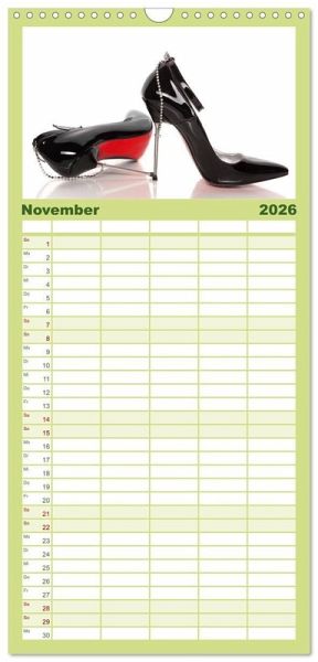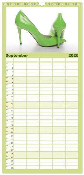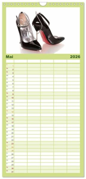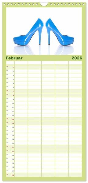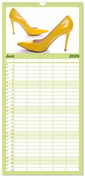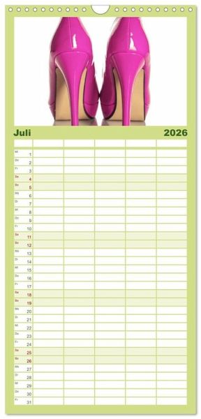 RAKTISCH - übersichtlicher Familienkalender mit 5 Spalten für bis zu 5 Personen für mehr Struktur im Alltag - so bleiben alle Termine im Blick!ÜBERSICHTLICH - mit farblich getrennten Wochen- und Feiertagen. Die einzelnen Felder bieten genügend Platz für Eintragungen. So macht Organisieren Spaß!FANTASTISCHE BILDER - Dieser Planer ist nicht nur eine nützliche Hilfe im Alltag, sondern schmückt gleichzeitig Ihr Zuhause. Ideal auch als Geschenk.FÜR ALLE STIFTE GEEIGNET - ganz egal, ob Sie lieber mit Kugelschreiber oder Bleistift schreiben.NACHHALTIG - deutliche Abfallreduzierung durch bedarfsgerechte Einzelstückfertigung, umweltfreundliches FSC-zertifiziertes Papier, Produktion in Deutschland, klimabewusste Logistik.High Heels können nicht nur sexy und erotisch, sondern durchaus auch farbenfroh sein. von Autor(in): Britta Laser