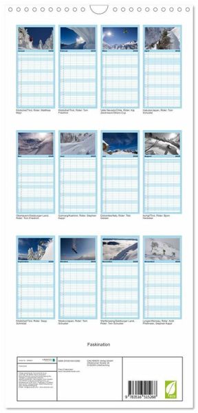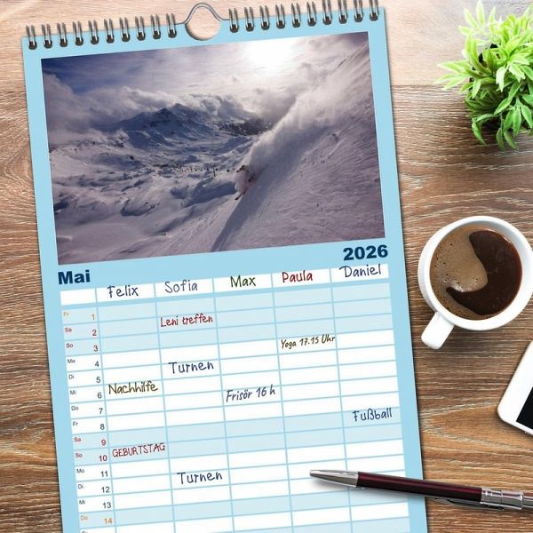 PRAKTISCH - übersichtlicher Familienkalender mit 5 Spalten für bis zu 5 Personen für mehr Struktur im Alltag - so bleiben alle Termine im Blick!ÜBERSICHTLICH - mit farblich getrennten Wochen- und Feiertagen. Die einzelnen Felder bieten genügend Platz für Eintragungen. So macht Organisieren Spaß!FANTASTISCHE BILDER - Dieser Planer ist nicht nur eine nützliche Hilfe im Alltag, sondern schmückt gleichzeitig Ihr Zuhause. Ideal auch als Geschenk.FÜR ALLE STIFTE GEEIGNET - ganz egal, ob Sie lieber mit Kugelschreiber oder Bleistift schreiben.NACHHALTIG - deutliche Abfallreduzierung durch bedarfsgerechte Einzelstückfertigung, umweltfreundliches FSC-zertifiziertes Papier, Produktion in Deutschland, klimabewusste Logistik.Faszinierende Skimotive meiner letzten Skireisen von Autor(in): Franz Faltermaier