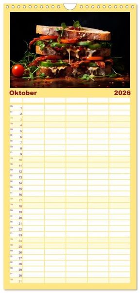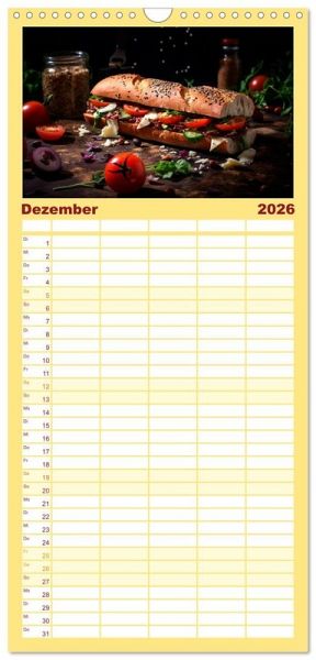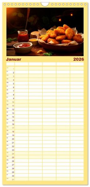 PRAKTISCH - übersichtlicher Familienkalender mit 5 Spalten für bis zu 5 Personen für mehr Struktur im Alltag - so bleiben alle Termine im Blick!ÜBERSICHTLICH - mit farblich getrennten Wochen- und Feiertagen. Die einzelnen Felder bieten genügend Platz für Eintragungen. So macht Organisieren Spaß!FANTASTISCHE BILDER - Dieser Planer ist nicht nur eine nützliche Hilfe im Alltag, sondern schmückt gleichzeitig Ihr Zuhause. Ideal auch als Geschenk.FÜR ALLE STIFTE GEEIGNET - ganz egal, ob Sie lieber mit Kugelschreiber oder Bleistift schreiben.NACHHALTIG - deutliche Abfallreduzierung durch bedarfsgerechte Einzelstückfertigung, umweltfreundliches FSC-zertifiziertes Papier, Produktion in Deutschland, klimabewusste Logistik.Sinnliches Fastfood: Stilvolle Genüsse, Monat für Monat. von Autor(in): anneliese-photography