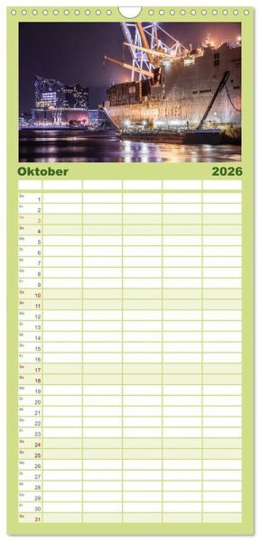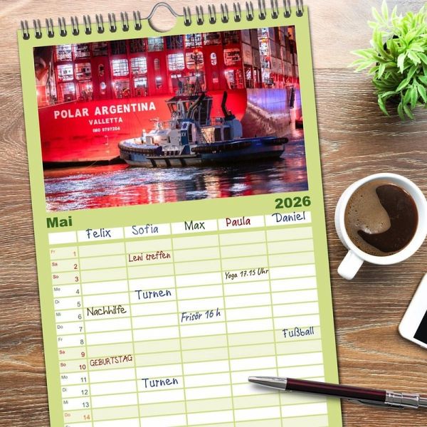 PRAKTISCH - übersichtlicher Familienkalender mit 5 Spalten für bis zu 5 Personen für mehr Struktur im Alltag - so bleiben alle Termine im Blick!ÜBERSICHTLICH - mit farblich getrennten Wochen- und Feiertagen. Die einzelnen Felder bieten genügend Platz für Eintragungen. So macht Organisieren Spaß!FANTASTISCHE BILDER - Dieser Planer ist nicht nur eine nützliche Hilfe im Alltag, sondern schmückt gleichzeitig Ihr Zuhause. Ideal auch als Geschenk.FÜR ALLE STIFTE GEEIGNET - ganz egal, ob Sie lieber mit Kugelschreiber oder Bleistift schreiben.NACHHALTIG - deutliche Abfallreduzierung durch bedarfsgerechte Einzelstückfertigung, umweltfreundliches FSC-zertifiziertes Papier, Produktion in Deutschland, klimabewusste Logistik.Industrieromantik aus der Hansestadt von Autor(in): kuk-foto Kai-Uwe Klauß