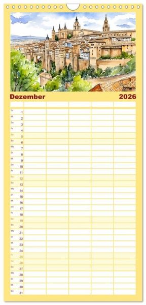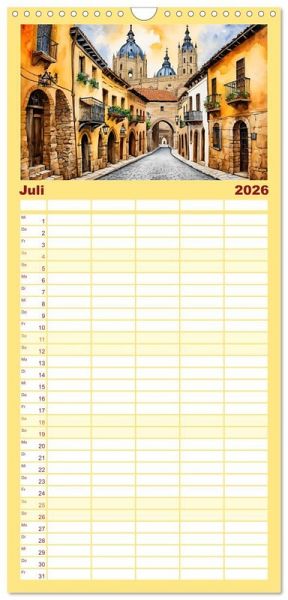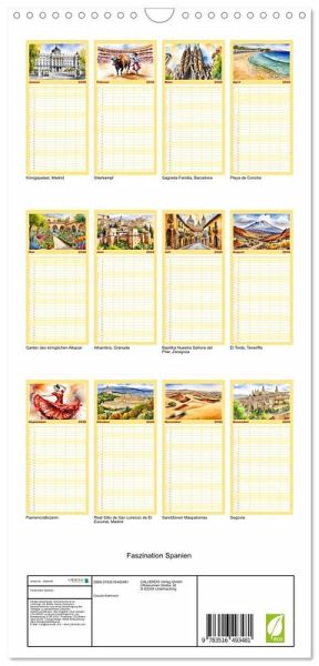 PRAKTISCH - übersichtlicher Familienkalender mit 5 Spalten für bis zu 5 Personen für mehr Struktur im Alltag - so bleiben alle Termine im Blick!ÜBERSICHTLICH - mit farblich getrennten Wochen- und Feiertagen. Die einzelnen Felder bieten genügend Platz für Eintragungen. So macht Organisieren Spaß!FANTASTISCHE BILDER - Dieser Planer ist nicht nur eine nützliche Hilfe im Alltag, sondern schmückt gleichzeitig Ihr Zuhause. Ideal auch als Geschenk.FÜR ALLE STIFTE GEEIGNET - ganz egal, ob Sie lieber mit Kugelschreiber oder Bleistift schreiben.NACHHALTIG - deutliche Abfallreduzierung durch bedarfsgerechte Einzelstückfertigung, umweltfreundliches FSC-zertifiziertes Papier, Produktion in Deutschland, klimabewusste Logistik.Zauberhafte Aquarelle der spanischen Tradition, Natur und Architektur von Autor(in): Claudia Kleemann