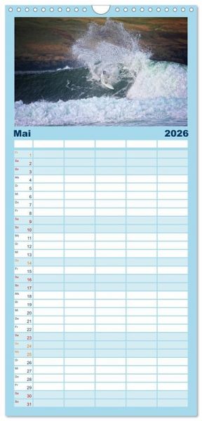 agen. Die einzelnen Felder bieten genügend Platz für Eintragungen. So macht Organisieren Spaß!FANTASTISCHE BILDER - Dieser Planer ist nicht nur eine nützliche Hilfe im Alltag, sondern schmückt gleichzeitig Ihr Zuhause. Ideal auch als Geschenk.FÜR ALLE STIFTE GEEIGNET - ganz egal, ob Sie lieber mit Kugelschreiber oder Bleistift schreiben.NACHHALTIG - deutliche Abfallreduzierung durch bedarfsgerechte Einzelstückfertigung, umweltfreundliches FSC-zertifiziertes Papier, Produktion in Deutschland, klimabewusste Logistik.Faszination Surfen, eingefangen in atemberaubenden Bildern von Autor(in): Martina Cross