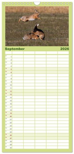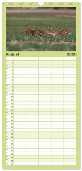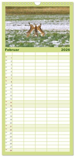 alender mit 5 Spalten für bis zu 5 Personen für mehr Struktur im Alltag - so bleiben alle Termine im Blick!ÜBERSICHTLICH - mit farblich getrennten Wochen- und Feiertagen. Die einzelnen Felder bieten genügend Platz für Eintragungen. So macht Organisieren Spaß!FANTASTISCHE BILDER - Dieser Planer ist nicht nur eine nützliche Hilfe im Alltag, sondern schmückt gleichzeitig Ihr Zuhause. Ideal auch als Geschenk.FÜR ALLE STIFTE GEEIGNET - ganz egal, ob Sie lieber mit Kugelschreiber oder Bleistift schreiben.NACHHALTIG - deutliche Abfallreduzierung durch bedarfsgerechte Einzelstückfertigung, umweltfreundliches FSC-zertifiziertes Papier, Produktion in Deutschland, klimabewusste Logistik.Ausgewählte Bilder von Feldhasen in Aktion. von Autor(in): eisvogel