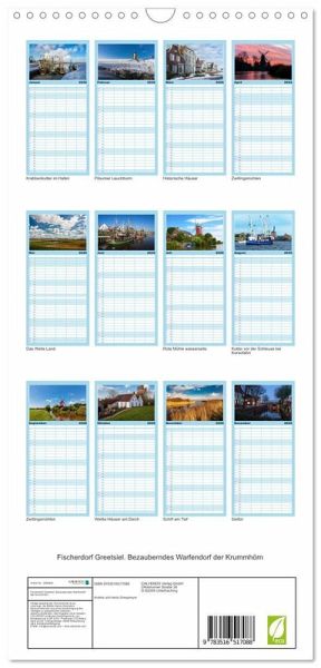 chtlicher Familienkalender mit 5 Spalten für bis zu 5 Personen für mehr Struktur im Alltag - so bleiben alle Termine im Blick!ÜBERSICHTLICH - mit farblich getrennten Wochen- und Feiertagen. Die einzelnen Felder bieten genügend Platz für Eintragungen. So macht Organisieren Spaß!FANTASTISCHE BILDER - Dieser Planer ist nicht nur eine nützliche Hilfe im Alltag, sondern schmückt gleichzeitig Ihr Zuhause. Ideal auch als Geschenk.FÜR ALLE STIFTE GEEIGNET - ganz egal, ob Sie lieber mit Kugelschreiber oder Bleistift schreiben.NACHHALTIG - deutliche Abfallreduzierung durch bedarfsgerechte Einzelstückfertigung, umweltfreundliches FSC-zertifiziertes Papier, Produktion in Deutschland, klimabewusste Logistik.Das Fischerdorf Greetsiel bezaubert mit zwölf Aufnahmen von Greetsiel und der direkten Umgebung. von Autor(in): Andrea Dreegmeyer