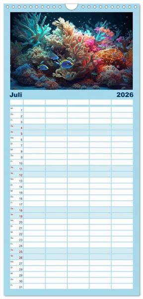 PRAKTISCH - übersichtlicher Familienkalender mit 5 Spalten für bis zu 5 Personen für mehr Struktur im Alltag - so bleiben alle Termine im Blick!ÜBERSICHTLICH - mit farblich getrennten Wochen- und Feiertagen. Die einzelnen Felder bieten genügend Platz für Eintragungen. So macht Organisieren Spaß!FANTASTISCHE BILDER - Dieser Planer ist nicht nur eine nützliche Hilfe im Alltag, sondern schmückt gleichzeitig Ihr Zuhause. Ideal auch als Geschenk.FÜR ALLE STIFTE GEEIGNET - ganz egal, ob Sie lieber mit Kugelschreiber oder Bleistift schreiben.NACHHALTIG - deutliche Abfallreduzierung durch bedarfsgerechte Einzelstückfertigung, umweltfreundliches FSC-zertifiziertes Papier, Produktion in Deutschland, klimabewusste Logistik.Buntes Leben unter der Oberfläche des Meeres von Autor(in): Kerstin Waurick