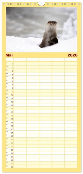 PRAKTISCH - übersichtlicher Familienkalender mit 5 Spalten für bis zu 5 Personen für mehr Struktur im Alltag - so bleiben alle Termine im Blick!ÜBERSICHTLICH - mit farblich getrennten Wochen- und Feiertagen. Die einzelnen Felder bieten genügend Platz für Eintragungen. So macht Organisieren Spaß!FANTASTISCHE BILDER - Dieser Planer ist nicht nur eine nützliche Hilfe im Alltag, sondern schmückt gleichzeitig Ihr Zuhause. Ideal auch als Geschenk.FÜR ALLE STIFTE GEEIGNET - ganz egal, ob Sie lieber mit Kugelschreiber oder Bleistift schreiben.NACHHALTIG - deutliche Abfallreduzierung durch bedarfsgerechte Einzelstückfertigung, umweltfreundliches FSC-zertifiziertes Papier, Produktion in Deutschland, klimabewusste Logistik.Fischotter sind flinke und wendige Jäger von Autor(in): Johann Rudolf Bogner