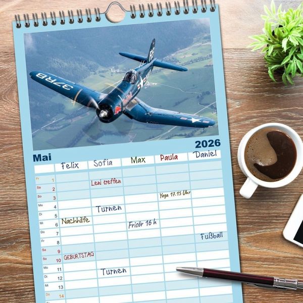 PRAKTISCH - übersichtlicher Familienkalender mit 5 Spalten für bis zu 5 Personen für mehr Struktur im Alltag - so bleiben alle Termine im Blick!ÜBERSICHTLICH - mit farblich getrennten Wochen- und Feiertagen. Die einzelnen Felder bieten genügend Platz für Eintragungen. So macht Organisieren Spaß!FANTASTISCHE BILDER - Dieser Planer ist nicht nur eine nützliche Hilfe im Alltag, sondern schmückt gleichzeitig Ihr Zuhause. Ideal auch als Geschenk.FÜR ALLE STIFTE GEEIGNET - ganz egal, ob Sie lieber mit Kugelschreiber oder Bleistift schreiben.NACHHALTIG - deutliche Abfallreduzierungdurch bedarfsgerechte Einzelstückfertigung, umweltfreundliches FSC-zertifiziertes Papier, Produktion in Deutschland, klimabewusste Logistik.Fliegende historische Flugzeuge des 2. Weltkrieges von Autor(in): Björn Engelke
