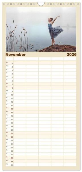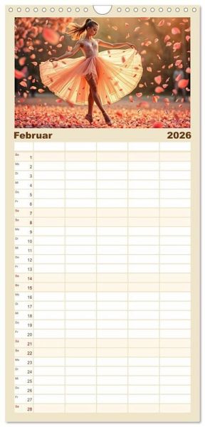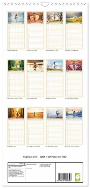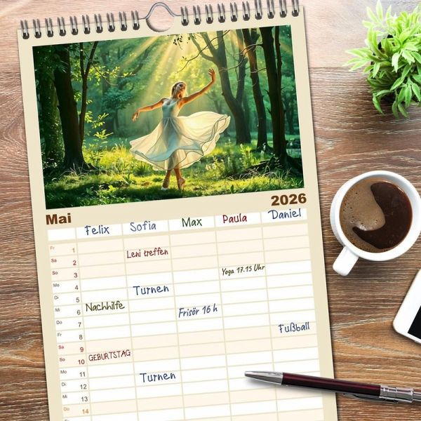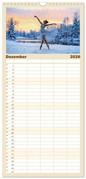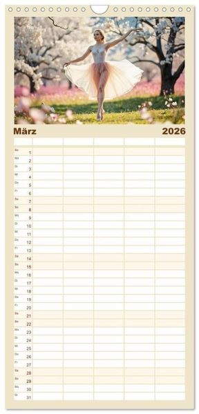 PRAKTISCH - übersichtlicher Familienkalender mit 5 Spalten für bis zu 5 Personen für mehr Struktur im Alltag - so bleiben alle Termine im Blick!ÜBERSICHTLICH - mit farblich getrennten Wochen- und Feiertagen. Die einzelnen Felder bieten genügend Platz für Eintragungen. So macht Organisieren Spaß!FANTASTISCHE BILDER - Dieser Planer ist nicht nur eine nützliche Hilfe im Alltag, sondern schmückt gleichzeitig Ihr Zuhause. Ideal auch als Geschenk.FÜR ALLE STIFTE GEEIGNET - ganz egal, ob Sie lieber mit Kugelschreiber oder Bleistift schreiben.NACHHALTIG - deutliche Abfallreduzierung durch bedarfsgerechte Einzelstückfertigung, umweltfreundliches FSC-zertifiziertes Papier, Produktion in Deutschland, klimabewusste Logistik.Ballettträume in lichtvoller Natur von Autor(in): Michaela Spreider