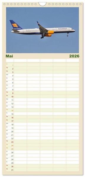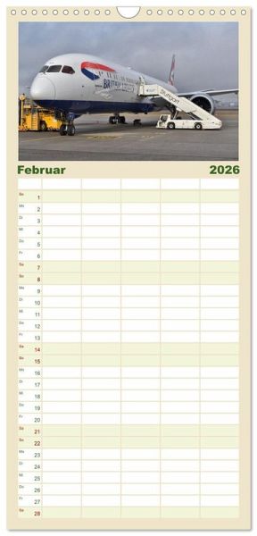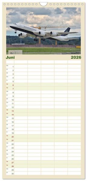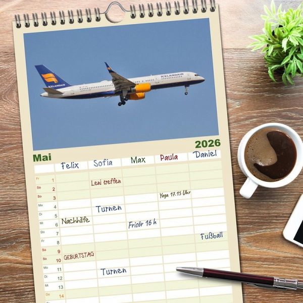 tlicher Familienkalender mit 5 Spalten für bis zu 5 Personen für mehr Struktur im Alltag - so bleiben alle Termine im Blick!ÜBERSICHTLICH - mit farblich getrennten Wochen- und Feiertagen. Die einzelnen Felder bieten genügend Platz für Eintragungen. So macht Organisieren Spaß!FANTASTISCHE BILDER - Dieser Planer ist nicht nur eine nützliche Hilfe im Alltag, sondern schmückt gleichzeitig Ihr Zuhause. Ideal auch als Geschenk.FÜR ALLE STIFTE GEEIGNET - ganz egal, ob Sie lieber mit Kugelschreiber oder Bleistift schreiben.NACHHALTIG - deutliche Abfallreduzierung durch bedarfsgerechte Einzelstückfertigung, umweltfreundliches FSC-zertifiziertes Papier, Produktion in Deutschland, klimabewusste Logistik.Eine Auswahl unterschiedlicher und teilweise seltener Flugzeugtypen. von Autor(in): Matthias Merz