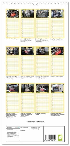 PRAKTISCH - übersichtlicher Familienkalender mit 5 Spalten für bis zu 5 Personen für mehr Struktur im Alltag - so bleiben alle Termine im Blick!ÜBERSICHTLICH - mit farblich getrennten Wochen- und Feiertagen. Die einzelnen Felder bieten genügend Platz für Eintragungen. So macht Organisieren Spaß!FANTASTISCHE BILDER - Dieser Planer ist nicht nur eine nützliche Hilfe im Alltag, sondern schmückt gleichzeitig Ihr Zuhause. Ideal auch als Geschenk.FÜR ALLE STIFTE GEEIGNET - ganz egal, ob Sie lieber mit Kugelschreiber oder Bleistift schreiben.NACHHALTIG - deutliche Abfallreduzierung durch bedarfsgerechte Einzelstückfertigung, umweltfreundliches FSC-zertifiziertes Papier, Produktion in Deutschland, klimabewusste Logistik.Ford Flathead V8 Motoren von Autor(in): Miwi