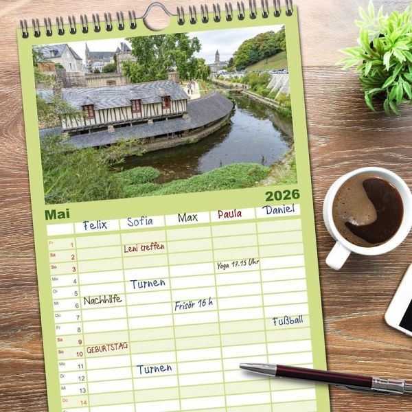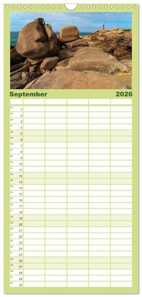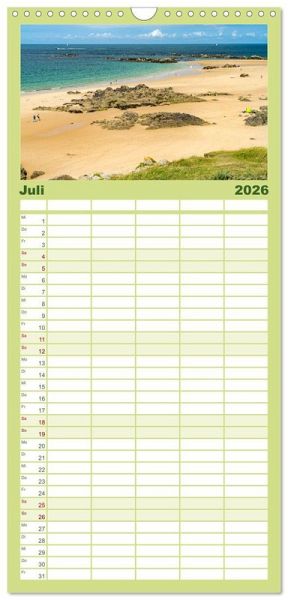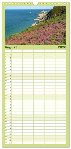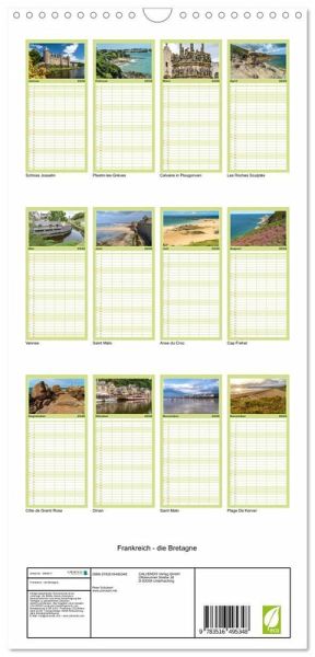 r>PRAKTISCH - übersichtlicher Familienkalender mit 5 Spalten für bis zu 5 Personen für mehr Struktur im Alltag - so bleiben alle Termine im Blick!ÜBERSICHTLICH - mit farblich getrennten Wochen- und Feiertagen. Die einzelnen Felder bieten genügend Platz für Eintragungen. So macht Organisieren Spaß!FANTASTISCHE BILDER - Dieser Planer ist nicht nur eine nützliche Hilfe im Alltag, sondern schmückt gleichzeitig Ihr Zuhause. Ideal auch als Geschenk.FÜR ALLE STIFTE GEEIGNET - ganz egal, ob Sie lieber mit Kugelschreiber oder Bleistift schreiben.NACHHALTIG - deutliche Abfallreduzierung durch bedarfsgerechte Einzelstückfertigung, umweltfreundliches FSC-zertifiziertes Papier, Produktion in Deutschland, klimabewusste Logistik.12 farbenfrohe Monate mit der wunderbaren Bretagne in Frankreich. von Autor(in): Peter Schickert