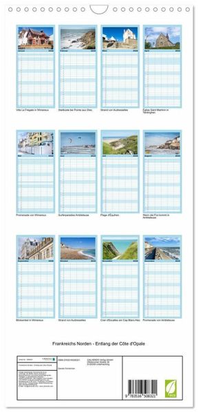 PRAKTISCH - übersichtlicher Familienkalender mit 5 Spalten für bis zu 5 Personen für mehr Struktur im Alltag - so bleiben alle Termine im Blick!ÜBERSICHTLICH - mit farblich getrennten Wochen- und Feiertagen. Die einzelnen Felder bieten genügend Platz für Eintragungen. So macht Organisieren Spaß!FANTASTISCHE BILDER - Dieser Planer ist nicht nur eine nützliche Hilfe im Alltag, sondern schmückt gleichzeitig Ihr Zuhause. Ideal auch als Geschenk.FÜR ALLE STIFTE GEEIGNET - ganz egal, ob Sie lieber mit Kugelschreiber oder Bleistift schreiben.NACHHALTIG - deutliche Abfallreduzierung durch bedarfsgerechte Einzelstückfertigung, umweltfreundliches FSC-zertifiziertes Papier, Produktion in Deutschland, klimabewusste Logistik.Der farbenprächtige Küstenstreifen zwischen Calais und der Somme-Mündung von Autor(in): DannyTchi