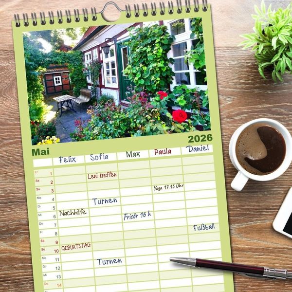 PRAKTISCH - übersichtlicher Familienkalender mit 5 Spalten für bis zu 5 Personen für mehr Struktur im Alltag - so bleiben alle Termine im Blick!ÜBERSICHTLICH - mit farblich getrennten Wochen- und Feiertagen. Die einzelnen Felder bieten genügend Platz für Eintragungen. So macht Organisieren Spaß!FANTASTISCHE BILDER - Dieser Planer ist nicht nur eine nützliche Hilfe im Alltag, sondern schmückt gleichzeitig Ihr Zuhause. Ideal auch als Geschenk.FÜR ALLE STIFTE GEEIGNET - ganz egal, ob Sie lieber mit Kugelschreiber oder Bleistift schreiben.NACHHALTIG - deutliche Abfallreduzierung durch bedarfsgerechte Einzelstückfertigung, umweltfreundliches FSC-zertifiziertes Papier, Produktion in Deutschland, klimabewusste Logistik.Das malerische Freiburg an der Elbe und sein Hafen von Autor(in): Henning von Loewis of Menar
