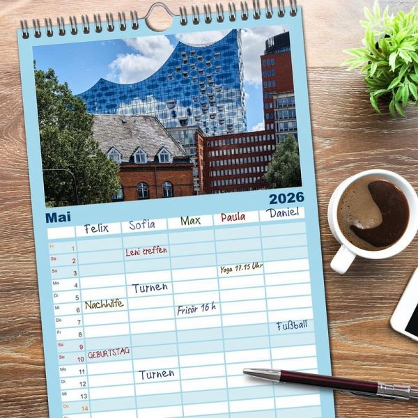 PRAKTISCH - übersichtlicher Familienkalender mit 5 Spalten für bis zu 5 Personen für mehr Struktur im Alltag - so bleiben alle Termine im Blick!ÜBERSICHTLICH - mit farblich getrennten Wochen- und Feiertagen. Die einzelnen Felder bieten genügend Platz für Eintragungen. So macht Organisieren Spaß!FANTASTISCHE BILDER - Dieser Planer ist nicht nur eine nützliche Hilfe im Alltag, sondern schmückt gleichzeitig Ihr Zuhause. Ideal auch als Geschenk.FÜR ALLE STIFTE GEEIGNET - ganz egal, ob Sie lieber mit Kugelschreiber oder Bleistift schreiben.NACHHALTIG - deutliche Abfallreduzierung durch bedarfsgerechte Einzelstückfertigung, umweltfreundliches FSC-zertifiziertes Papier, Produktion in Deutschland, klimabewusste Logistik.Hamburg das Tor zur Welt von Autor(in): Thomas Leonhardy