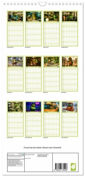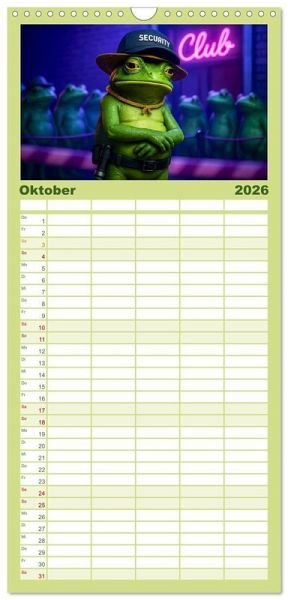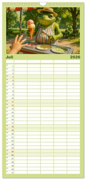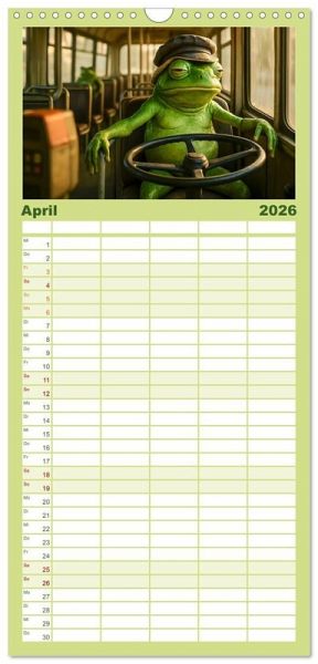 PRAKTISCH - übersichtlicher Familienkalender mit 5 Spalten für bis zu 5 Personen für mehr Struktur im Alltag - so bleiben alle Termine im Blick!ÜBERSICHTLICH - mit farblich getrennten Wochen- und Feiertagen. Die einzelnen Felder bieten genügend Platz für Eintragungen. So macht Organisieren Spaß!FANTASTISCHE BILDER - Dieser Planer ist nicht nur eine nützliche Hilfe im Alltag, sondern schmückt gleichzeitig Ihr Zuhause. Ideal auch als Geschenk.FÜR ALLE STIFTE GEEIGNET - ganz egal, ob Sie lieber mit Kugelschreiber oder Bleistift schreiben.NACHHALTIG - deutliche Abfallreduzierung durch bedarfsgerechte Einzelstückfertigung, umweltfreundliches FSC-zertifiziertes Papier, Produktion in Deutschland, klimabewusste Logistik.Ein Strohhut-Frosch macht seinen Job. von Autor(in): D.Elskamp-Photography