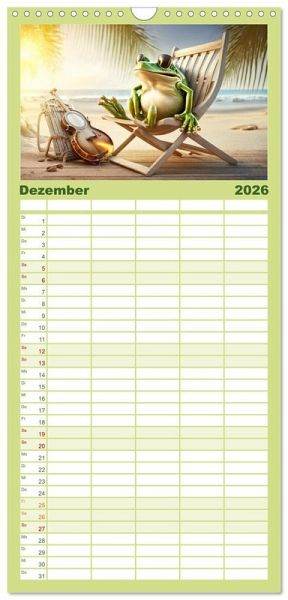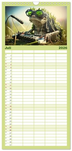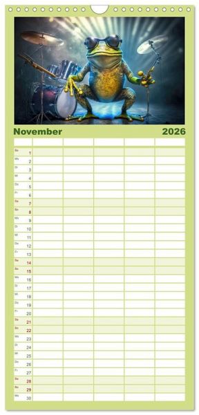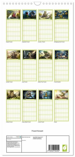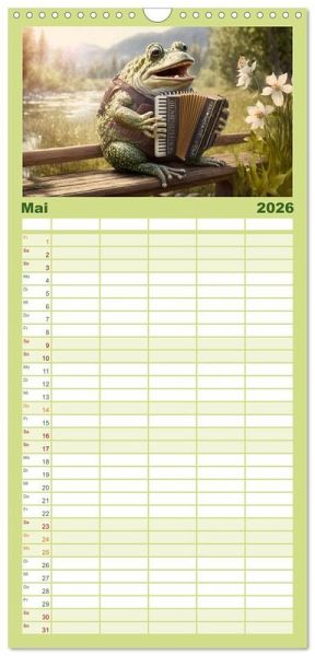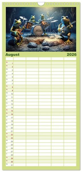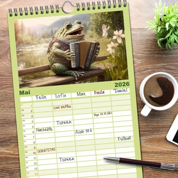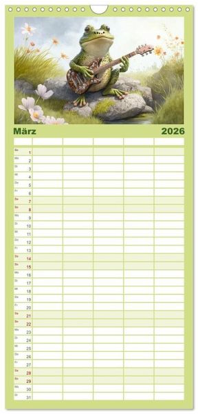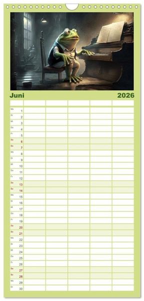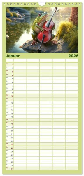 ktur im Alltag - so bleiben alle Termine im Blick!ÜBERSICHTLICH - mit farblich getrennten Wochen- und Feiertagen. Die einzelnen Felder bieten genügend Platz für Eintragungen. So macht Organisieren Spaß!FANTASTISCHE BILDER - Dieser Planer ist nicht nur eine nützliche Hilfe im Alltag, sondern schmückt gleichzeitig Ihr Zuhause. Ideal auch als Geschenk.FÜR ALLE STIFTE GEEIGNET - ganz egal, ob Sie lieber mit Kugelschreiber oder Bleistift schreiben.NACHHALTIG - deutliche Abfallreduzierung durch bedarfsgerechte Einzelstückfertigung, umweltfreundliches FSC-zertifiziertes Papier, Produktion in Deutschland, klimabewusste Logistik.Froschmusik für das ganze Jahr von Autor(in): Daniel Rohr