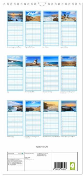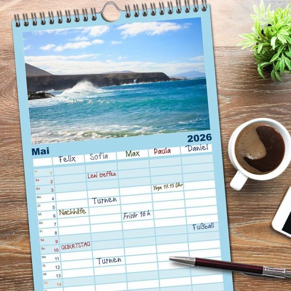 PRAKTISCH - übersichtlicher Familienkalender mit 5 Spalten für bis zu 5 Personen für mehr Struktur im Alltag - so bleiben alle Termine im Blick!ÜBERSICHTLICH - mit farblich getrennten Wochen- und Feiertagen. Die einzelnen Felder bieten genügend Platz für Eintragungen. So macht Organisieren Spaß!FANTASTISCHE BILDER - Dieser Planer ist nicht nur eine nützliche Hilfe im Alltag, sondern schmückt gleichzeitig Ihr Zuhause. Ideal auch als Geschenk.FÜR ALLE STIFTE GEEIGNET - ganz egal, ob Sie lieber mit Kugelschreiber oder Bleistift schreiben.NACHHALTIG - deutliche Abfallreduzierung durch bedarfsgerechte Einzelstückfertigung, umweltfreundliches FSC-zertifiziertes Papier, Produktion in Deutschland, klimabewusste Logistik.13 tolle Motive von der kargen Perle der Kanarischen Inseln von Autor(in): Dominik Wigger