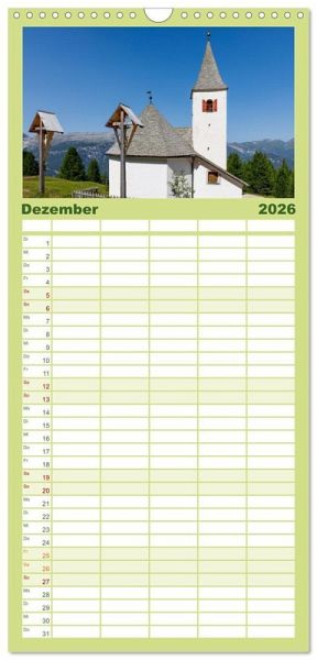 PRAKTISCH - übersichtlicher Familienkalender mit 5 Spalten für bis zu 5 Personen für mehr Struktur im Alltag - so bleiben alle Termine im Blick!ÜBERSICHTLICH - mit farblich getrennten Wochen- und Feiertagen. Die einzelnen Felder bieten genügend Platz für Eintragungen. So macht Organisieren Spaß!FANTASTISCHE BILDER - Dieser Planer ist nicht nur eine nützliche Hilfe im Alltag, sondern schmückt gleichzeitig Ihr Zuhause. Ideal auch als Geschenk.FÜR ALLE STIFTE GEEIGNET - ganz egal, ob Sie lieber mit Kugelschreiber oder Bleistift schreiben.NACHHALTIG - deutliche Abfallreduzierung durch bedarfsgerechte Einzelstückfertigung, umweltfreundliches FSC-zertifiziertes Papier, Produktion in Deutschland, klimabewusste Logistik.Bergwelt in Südtirol von Autor(in): NicGie_Photography