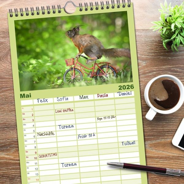 HTLICH - mit farblich getrennten Wochen- und Feiertagen. Die einzelnen Felder bieten genügend Platz für Eintragungen. So macht Organisieren Spaß!FANTASTISCHE BILDER - Dieser Planer ist nicht nur eine nützliche Hilfe im Alltag, sondern schmückt gleichzeitig Ihr Zuhause. Ideal auch als Geschenk.FÜR ALLE STIFTE GEEIGNET - ganz egal, ob Sie lieber mit Kugelschreiber oder Bleistift schreiben.NACHHALTIG - deutliche Abfallreduzierung durch bedarfsgerechte Einzelstückfertigung, umweltfreundliches FSC-zertifiziertes Papier, Produktion in Deutschland, klimabewusste Logistik.Eichhörnchen und Mäuse in Szene gesetzt von Autor(in): Sylvia Süss