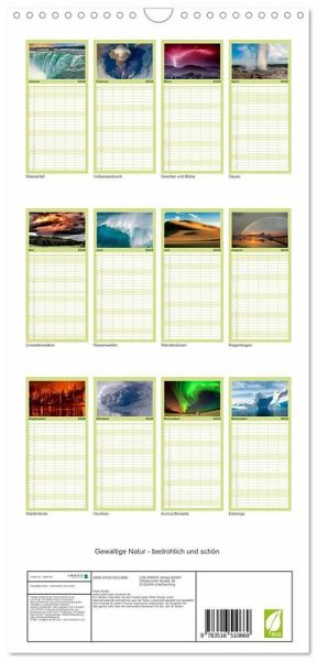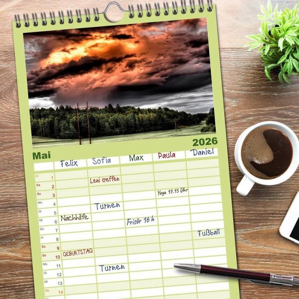 icher Familienkalender mit 5 Spalten für bis zu 5 Personen für mehr Struktur im Alltag - so bleiben alle Termine im Blick!ÜBERSICHTLICH - mit farblich getrennten Wochen- und Feiertagen. Die einzelnen Felder bieten genügend Platz für Eintragungen. So macht Organisieren Spaß!FANTASTISCHE BILDER - Dieser Planer ist nicht nur eine nützliche Hilfe im Alltag, sondern schmückt gleichzeitig Ihr Zuhause. Ideal auch als Geschenk.FÜR ALLE STIFTE GEEIGNET - ganz egal, ob Sie lieber mit Kugelschreiber oder Bleistift schreiben.NACHHALTIG - deutliche Abfallreduzierung durch bedarfsgerechte Einzelstückfertigung, umweltfreundliches FSC-zertifiziertes Papier, Produktion in Deutschland, klimabewusste Logistik.Erstaunliche Bilder aus dem Reichtum der Natur - Naturgewalten und Naturschönheiten. von Autor(in): Peter Roder