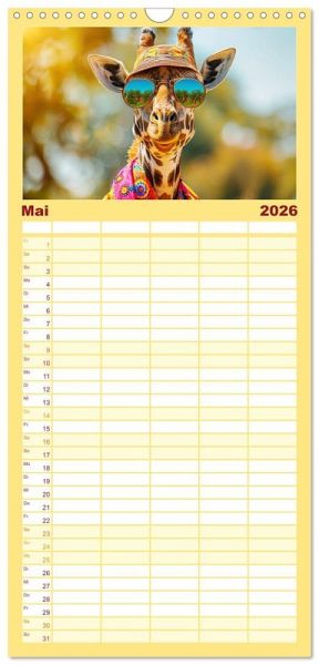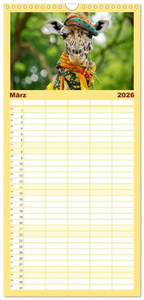 PRAKTISCH - übersichtlicher Familienkalender mit 5 Spalten für bis zu 5 Personen für mehr Struktur im Alltag - so bleiben alle Termine im Blick!ÜBERSICHTLICH - mit farblich getrennten Wochen- und Feiertagen. Die einzelnen Felder bieten genügend Platz für Eintragungen. So macht Organisieren Spaß!FANTASTISCHE BILDER - Dieser Planer ist nicht nur eine nützliche Hilfe im Alltag, sondern schmückt gleichzeitig Ihr Zuhause. Ideal auch als Geschenk.FÜR ALLE STIFTE GEEIGNET - ganz egal, ob Sie lieber mit Kugelschreiber oder Bleistift schreiben.NACHHALTIG - deutliche Abfallreduzierung durch bedarfsgerechte Einzelstückfertigung, umweltfreundliches FSC-zertifiziertes Papier, Produktion in Deutschland, klimabewusste Logistik.Wilde Modeabenteuer in der Savanne von Autor(in): Rose Hurley