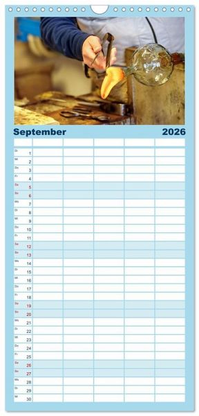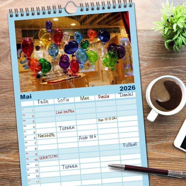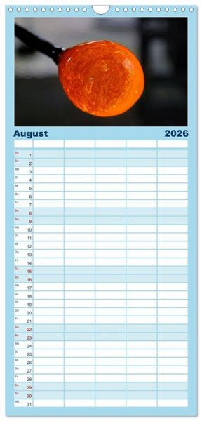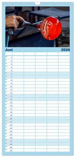 PRAKTISCH - übersichtlicher Familienkalender mit 5 Spalten für bis zu 5 Personen für mehr Struktur im Alltag - so bleiben alle Termine im Blick!ÜBERSICHTLICH - mit farblich getrennten Wochen- und Feiertagen. Die einzelnen Felder bieten genügend Platz für Eintragungen. So macht Organisieren Spaß!FANTASTISCHE BILDER - Dieser Planer ist nicht nur eine nützliche Hilfe im Alltag, sondern schmückt gleichzeitig Ihr Zuhause. Ideal auch als Geschenk.FÜR ALLE STIFTE GEEIGNET - ganz egal, ob Sie lieber mit Kugelschreiber oder Bleistift schreiben.NACHHALTIG - deutliche Abfallreduzierung durch bedarfsgerechte Einzelstückfertigung, umweltfreundliches FSC-zertifiziertes Papier, Produktion in Deutschland, klimabewusste Logistik.Glasblasen ist die Kunst, geschmolzenes Glas durch Blasen und Formen in verschiedene Objekte zu verwandeln. von Autor(in): Susan Michel