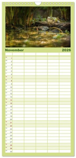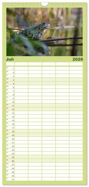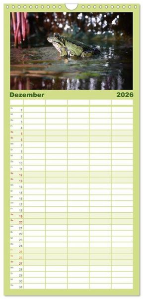 so bleiben alle Termine im Blick!ÜBERSICHTLICH - mit farblich getrennten Wochen- und Feiertagen. Die einzelnen Felder bieten genügend Platz für Eintragungen. So macht Organisieren Spaß!FANTASTISCHE BILDER - Dieser Planer ist nicht nur eine nützliche Hilfe im Alltag, sondern schmückt gleichzeitig Ihr Zuhause. Ideal auch als Geschenk.FÜR ALLE STIFTE GEEIGNET - ganz egal, ob Sie lieber mit Kugelschreiber oder Bleistift schreiben.NACHHALTIG - deutliche Abfallreduzierung durch bedarfsgerechte Einzelstückfertigung, umweltfreundliches FSC-zertifiziertes Papier, Produktion in Deutschland, klimabewusste Logistik.Heimische Frösche mit der Kamera eingefangen von Autor(in): Kathrin Gawlik