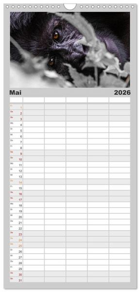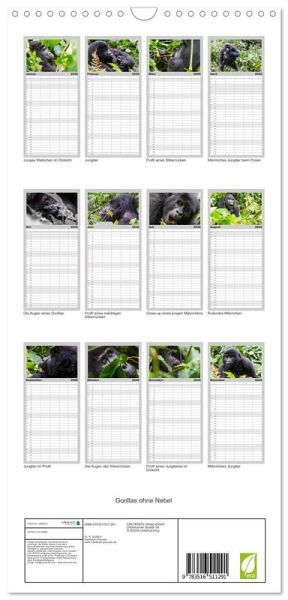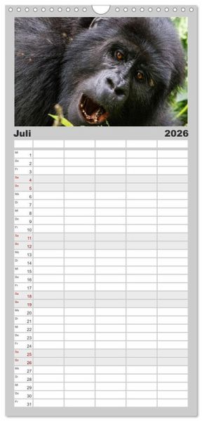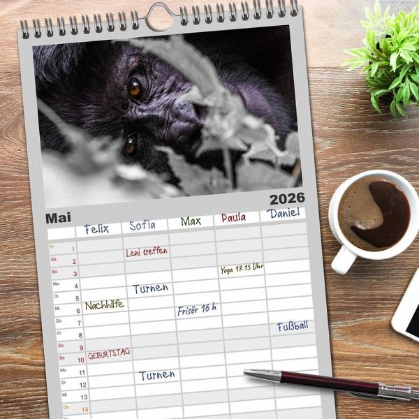 PRAKTISCH - übersichtlicher Familienkalender mit 5 Spalten für bis zu 5 Personen für mehr Struktur im Alltag - so bleiben alle Termine im Blick!ÜBERSICHTLICH - mit farblich getrennten Wochen- und Feiertagen. Die einzelnen Felder bieten genügend Platz für Eintragungen. So macht Organisieren Spaß!FANTASTISCHE BILDER - Dieser Planer ist nicht nur eine nützliche Hilfe im Alltag, sondern schmückt gleichzeitig Ihr Zuhause. Ideal auch als Geschenk.FÜR ALLE STIFTE GEEIGNET - ganz egal, ob Sie lieber mit Kugelschreiber oder Bleistift schreiben.NACHHALTIG - deutliche Abfallreduzierung durch bedarfsgerechte Einzelstückfertigung, umweltfreundliches FSC-zertifiziertes Papier, Produktion in Deutschland, klimabewussteLogistik.Gorillabilder aus dem Bwindi-Nationalpark, Uganda von Autor(in): Hawkeyes-Pictures