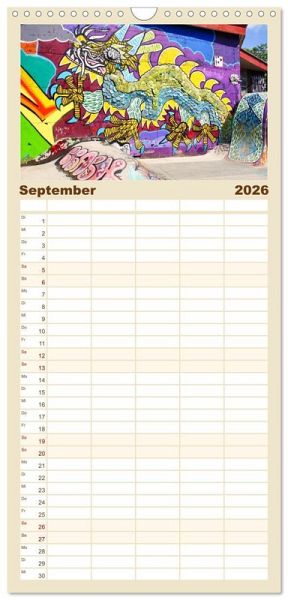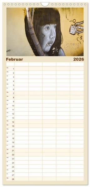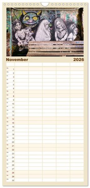 PRAKTISCH - übersichtlicher Familienkalender mit 5 Spalten für bis zu 5 Personen für mehr Struktur im Alltag - so bleiben alle Termine im Blick!ÜBERSICHTLICH - mit farblich getrennten Wochen- und Feiertagen. Die einzelnen Felder bieten genügend Platz für Eintragungen. So macht Organisieren Spaß!FANTASTISCHE BILDER - Dieser Planer ist nicht nur eine nützliche Hilfe im Alltag, sondern schmückt gleichzeitig Ihr Zuhause. Ideal auch als Geschenk.FÜR ALLE STIFTE GEEIGNET - ganz egal, ob Sie lieber mit Kugelschreiber oder Bleistift schreiben.NACHHALTIG - deutliche Abfallreduzierung durch bedarfsgerechte Einzelstückfertigung, umweltfreundliches FSC-zertifiziertes Papier, Produktion in Deutschland, klimabewusste Logistik.Graffiti, auchStreetart genannt, ist eine nicht kommerzielle Form von Kunst im öffentlichen Raum. von Autor(in): Solveig Rogalski