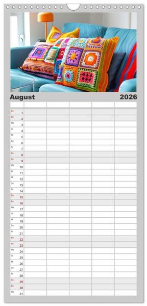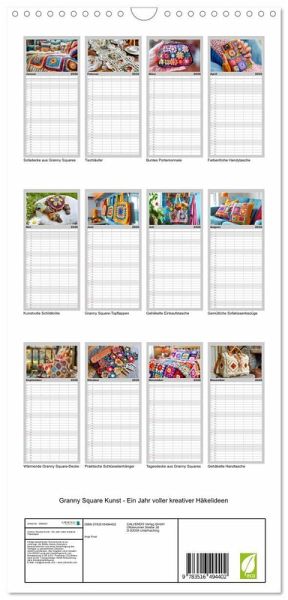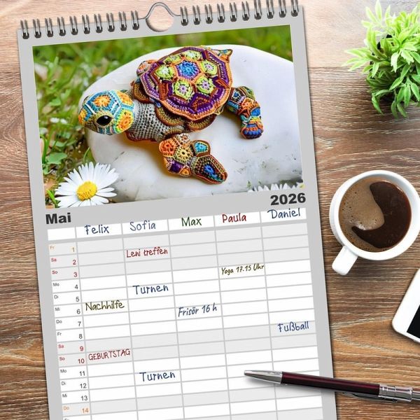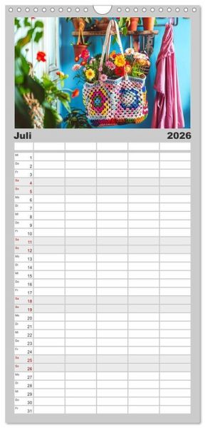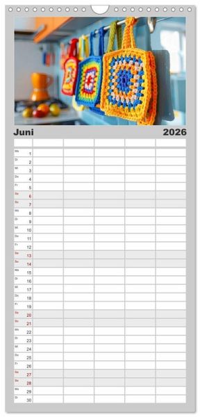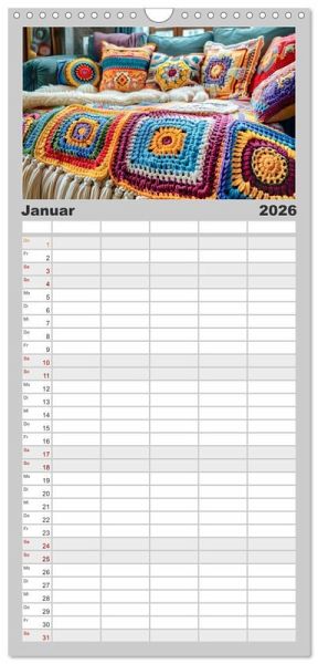 PRAKTISCH - übersichtlicher Familienkalender mit 5 Spalten für bis zu 5 Personen für mehr Struktur im Alltag - so bleiben alle Termine im Blick!ÜBERSICHTLICH - mit farblich getrennten Wochen- und Feiertagen. Die einzelnen Felder bieten genügend Platz für Eintragungen. So macht Organisieren Spaß!FANTASTISCHE BILDER - Dieser Planer ist nicht nur eine nützliche Hilfe im Alltag, sondern schmückt gleichzeitig Ihr Zuhause. Ideal auch als Geschenk.FÜR ALLE STIFTE GEEIGNET - ganz egal, ob Sie lieber mit Kugelschreiber oder Bleistift schreiben.NACHHALTIG - deutliche Abfallreduzierung durch bedarfsgerechte Einzelstückfertigung, umweltfreundliches FSC-zertifiziertes Papier, Produktion in Deutschland, klimabewusste Logistik.Häkelkunst mit Granny Squares - Ein Jahr voller Kreativität von Autor(in): Anja Frost