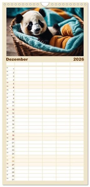 PRAKTISCH - übersichtlicher Familienkalender mit 5 Spalten für bis zu 5 Personen für mehr Struktur im Alltag - so bleiben alle Termine im Blick!ÜBERSICHTLICH - mit farblich getrennten Wochen- und Feiertagen. Die einzelnen Felder bieten genügend Platz für Eintragungen. So macht Organisieren Spaß!FANTASTISCHE BILDER - Dieser Planer ist nicht nur eine nützliche Hilfe im Alltag, sondern schmückt gleichzeitig Ihr Zuhause. Ideal auch als Geschenk.FÜR ALLE STIFTE GEEIGNET - ganz egal, ob Sie lieber mit Kugelschreiber oder Bleistift schreiben.NACHHALTIG - deutliche Abfallreduzierung durch bedarfsgerechte Einzelstückfertigung, umweltfreundliches FSC-zertifiziertes Papier, Produktion in Deutschland, klimabewusste Logistik.Das gemütliche, vegetarisch lebende Raubtier in China von Autor(in): Claudia Kleemann